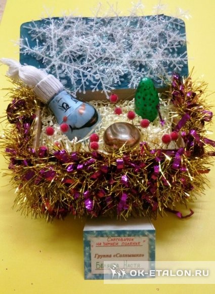 Лепим мы Снеговика! Шар за шаром, накатали, Мокрым снегом все бока, Дружно вместе начинали, Мы лепить Снеговика. Самый крупный стал на низ, Чуть поменьше в середину, Ну, а маленький,держись! Верхним будет, лёг на спину. Колобка два, будут ножки, Ручки с веток соберём, Вон ведро нашёл Серёжка! Словно шапочка на нём. Дашка краской мажет щёки, Угольками трёт глаза, Брови чёрненькие крохи, Рот и нос, всё как ...