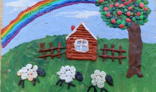 "Моя дача". Работа выполнена в технике пластилинографии. Работа была выполнена в течении недели.