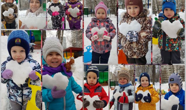 Из обычной снежной льдинки с ребятами сформировали снежное сердце и отправили всем Мамам на День Святого Валентина