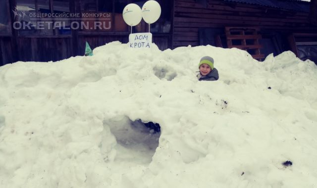 Когда выпадает много снега, то можно целый день играть во дворе . Можно построить подземный лабиринт со множеством входов и туннелей . Представляю вам мою работу- "Дом крота".