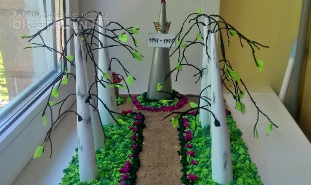 "Аллея Героев". Картон, гофрированная бумага, песок.