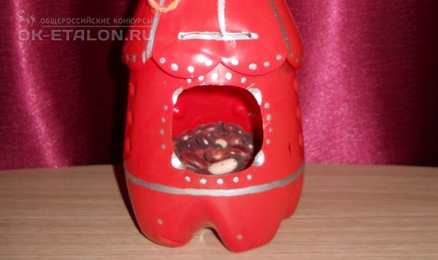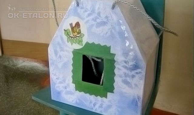 Чудесная кормушка из ПВХ материалов. Корпус кормушки сделан из панелей ПВХ, а стойки из труб ПВХ. Кормушка украшена мишурой и рисунком. Кормушка надежная, не тяжелая и птичкам она очень понравилась.