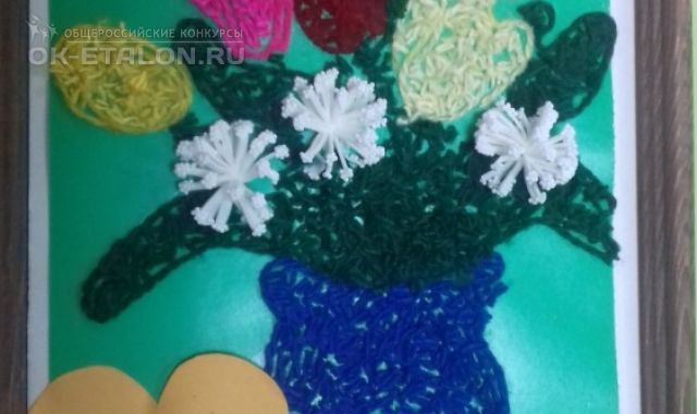 Эту работу Настя выполняла вместе с бабушкой. Работа выполнена из атласных ленточек. Подарок для учительницы к 8 марта.