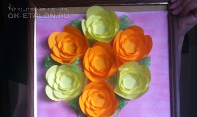 Этот букет я изготовил для выставки посвященной празднику 8 Марта. Цветы сделаны из обычных яичных решеток и гофрированной бумаги.