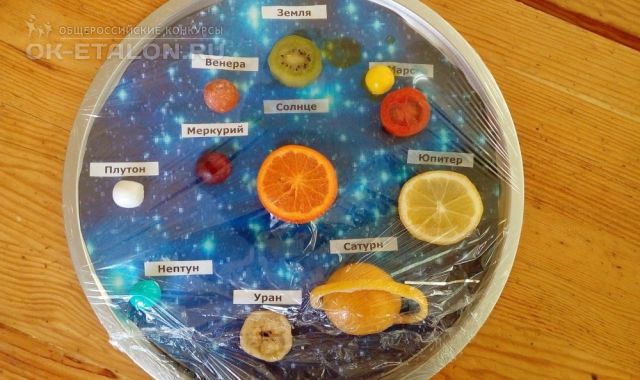 Изготовление поделки "Строение солнечной системы" (выполнена из фруктов и овощей).