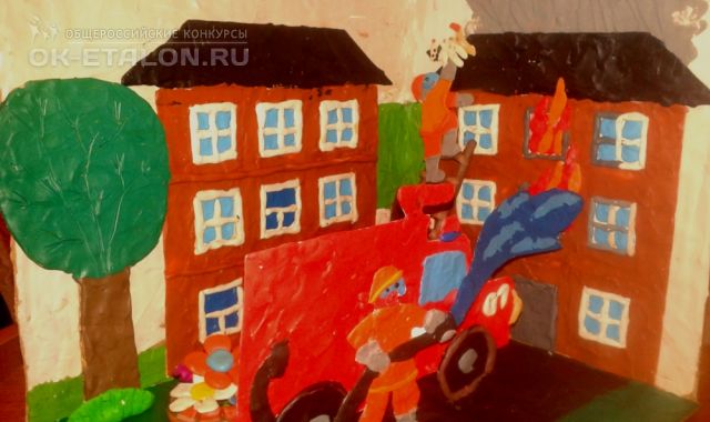 "Герои легендарные, в огонь идут пожарные!". Техника работы - макет, пластилинография посвящённый ППБ.