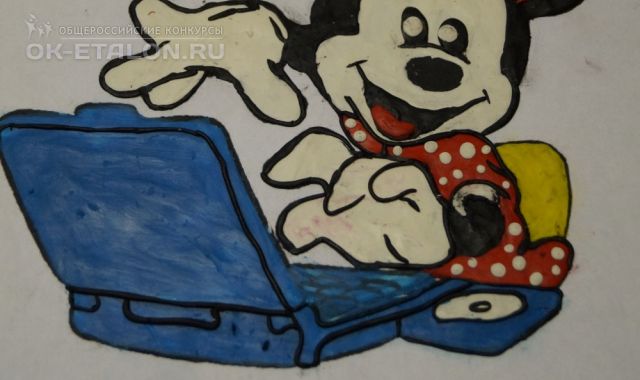 Мышку Мини вылепили из пластилина на листе бумаги.